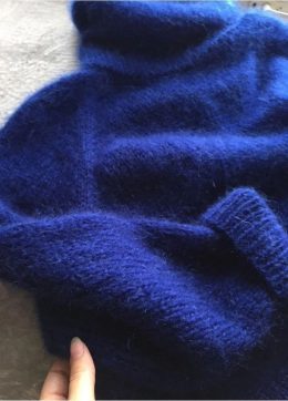 Свободный силуэт и мягкая текстура мохера создают уют и стиль. Объемный воротник-стойка добавляет элегантности и тепла, а длинные рукава с широкими манжетами подчеркивают непринужденность образа. Идеален для холодного сезона, сочетая комфорт и модный акцент.