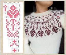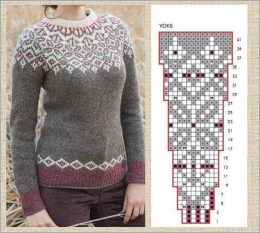 Этот трогательный вязаный свитер выполнен в традиционном стиле с использованием техники жаккарда. Серый фон украшен изысканными бело-бордовыми узорами, которые придают изделию элегантность и уют. Приталенный фасон подчеркивает силуэт, а сложный узор на кокетке добавляет изюминку. Идеальный выбор для холодных дней, когда хочется укутаться в тепло и стиль.