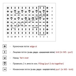 Топ выполнен спицами из мягкой пряжи с оригинальным листовым узором, который придает изделию легкость и воздушность. Отличается аккуратными боковыми вставками и...