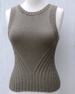 Этот элегантный вязаный топ отличается уникальным геометрическим узором, который подчеркивает фигуру. Прямые и диагональные линии создают интересный визуальный эффект, а мягкий серый оттенок делает его универсальным для различных стилей. Топ выполнен из качественной пряжи, обеспечивающей комфорт и долговечность.