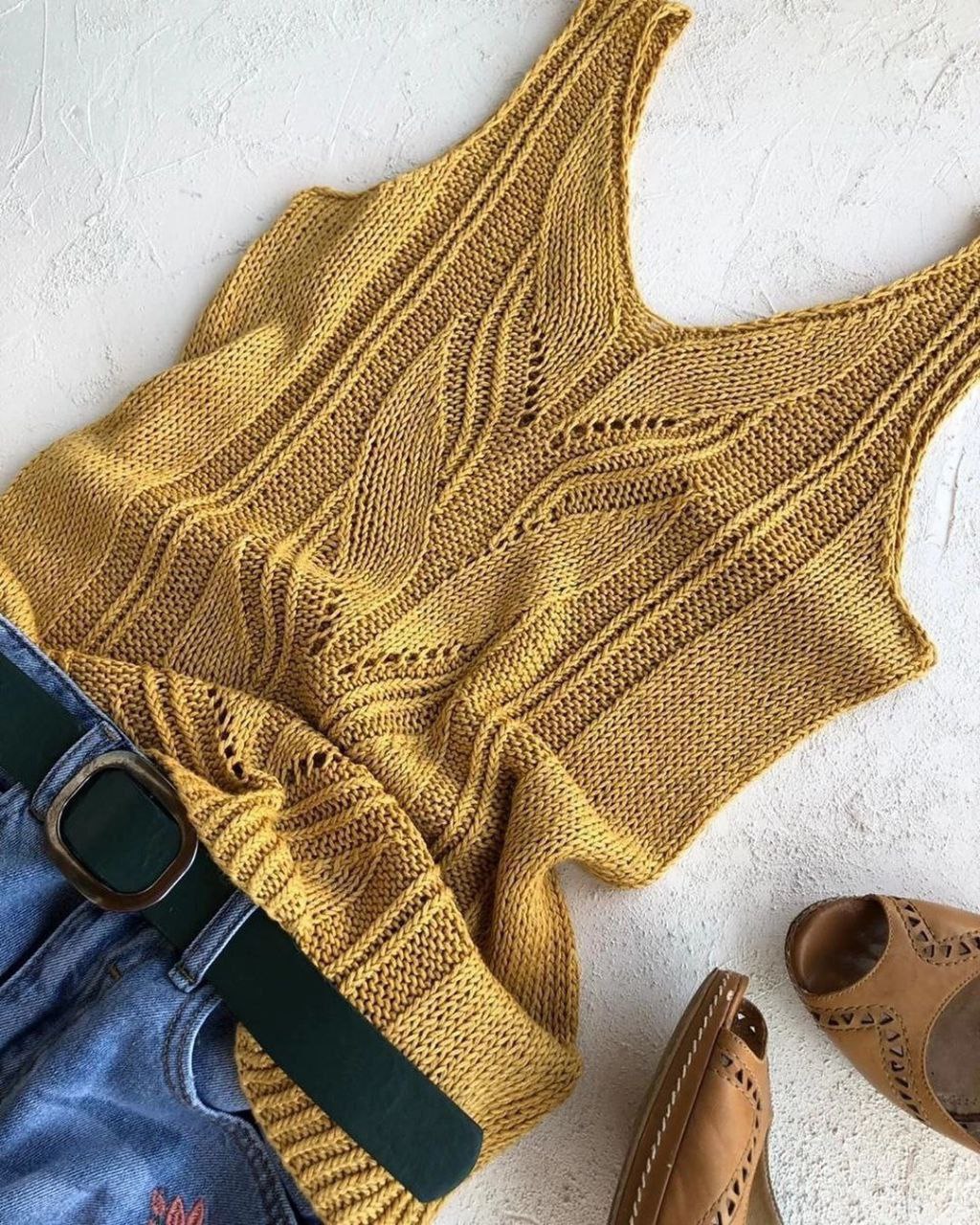 Вязаный топ с узором из листьев