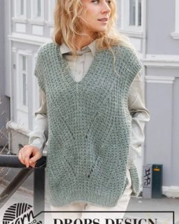 Этот уютный жилет с глубоким V-образным вырезом и объемной текстурой словно создан для тех, кто любит сочетать комфорт и стиль. Особенность модели — сложный рельефный узор, придающий изделию выразительность и уникальность. Свободный крой позволяет носить жилет поверх рубашек и блузок, создавая модный многослойный образ.