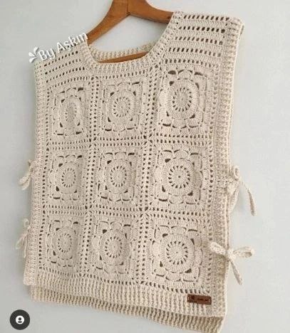Этот жилет создан из шести уникальных квадратных мотивов с изящными цветочными узорами, которые придают изделию утонченность и стиль. Обратите внимание на аккуратный боковой завязанный бантик — мелочь, делающая жилет по-настоящему особенным. Хотели бы вы добавить такой элемент в свой гардероб?