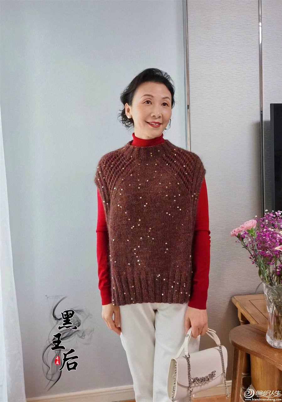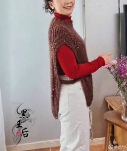 Этот элегантный вязаный жилет, выполненный спицами, привлекает внимание своим глубоким коричневым цветом и изысканным фасоном. Свободный крой и боковые разрезы делают его современным и удобным. Интересный факт: добавление блестящих элементов придаёт изделию особый шарм.
