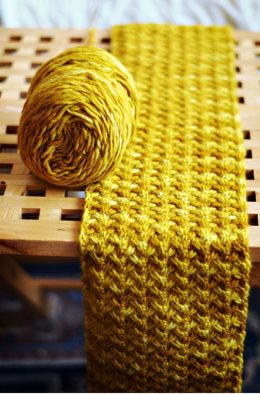Свяжите чулочным узором еще б рядов, чередуя цвет нити каждые 2 ряда.