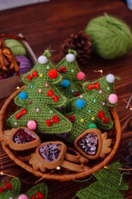 Украсьте свой праздник стильными вязанными елочками! Эти милые украшения добавят уюта и волшебства вашему дому.