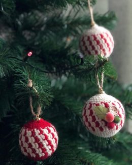 Изысканные шары, связанные спицами из мягкой пряжи, украшены яркими узорами с сердцами и снежинками, создавая уютную атмосферу праздника. Каждое изделие выполне...