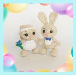 Зайки — молодожены амигуруми