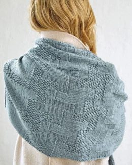 Контраст нежного кремового пальто и голубого вязаного шарфа создает впечатление легкости и тепла. Шарф украшен сложным геометрическим узором, добавляющим глубину и текстуру, а его мягкость дарит ощущение комфорта в прохладные дни.
