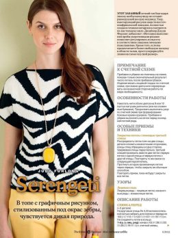Спицами, с интересным фактом: этот стильный топ с графическим рисунком, напоминающим полосы зебры, превращает обычный день в сафари. Уникальные рукава и контрастные полосы придают изделию динамику и смелость, создавая эффект движения.