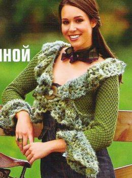 Зеленый жакет вязаный крючком