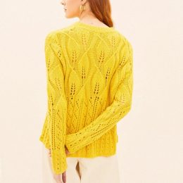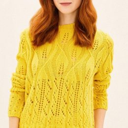 Знаете ли вы, что ажурный узор может сделать теплый свитер более воздушным и легким? Этот ярко-желтый свитер связан спицами с необычным ажурным узором, который напоминает солнечные лучи. Завораживающие переплетения и насыщенный цвет делают его настоящим произведением искусства.