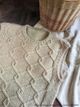 Уникальный вязаный спицами жилет с выразительным рельефным узором из переплетенных кос, создающих эффект объемной сетки. Модель выполнена из мягкой пряжи нейтрального оттенка, что подчеркивает текстуру и сложность узора. Особое внимание уделено аккуратной обработке пройм и горловины резинкой, придающей изделию завершенный и стильный вид. Такой жилет отлично дополнит как повседневный, так и более элегантный образ, сочетаясь с рубашками и водолазками.