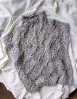 Уникальный жилет, связанный спицами из мягкой пряжи с эффектом твида, отличается сложным объемным узором с рельефными «вытянутыми» элементами, создающими эффект трехмерной текстуры. Модель выполнена с высоким горлом и аккуратными резинками по краям, что придает изделию элегантность и тепло. Использование техники вязания с объемными «косами» и мягкой пряжей делает жилет не только стильным, но и комфортным для носки в прохладное время года.