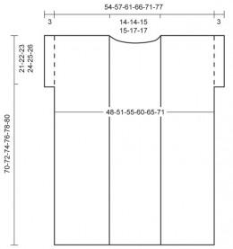 = 62-66-72-78-84-92 петель. Продолжайте вязать Полосами, пока не длина полотна не составит 68-70-72-74-76-78 см, тогда закройте в середине 16-16-18-18-20-20 петель для выреза горловины и далее вяжем плечи отдельно. Закрыть 1 петлю со стороны горловины = 22-24-26-29-31-35 оставшихся плечевых петель. Свободно закройте плечо, когда общая длина спинки не составит 70-72-74-76-78-80 см.