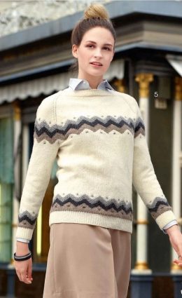 Этот уютный вязаный свитер с геометрическим узором напоминает о том, что в жизни важно учитывать каждую деталь. Мягкие, зигзагообразные полосы создают эффектный контраст на светлом фоне, добавляя динамику и стиль в каждый образ.