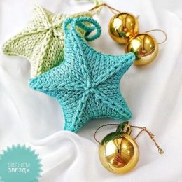 Знаете ли вы, что вязание может придать праздничному декору особое тепло и уют? Эти милые вязаные звёзды, выполненные спицами, привлекают внимание своей мягкостью и объёмной текстурой. Голубая звезда особенно выделяется своей насыщенностью, а золотые шарики добавляют роскошный блеск.